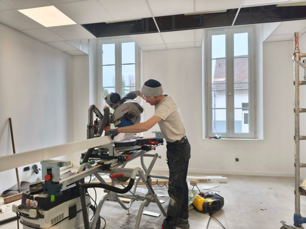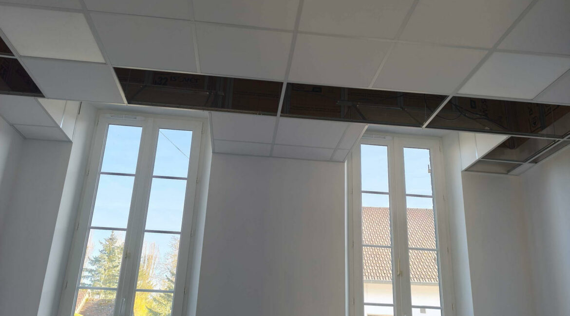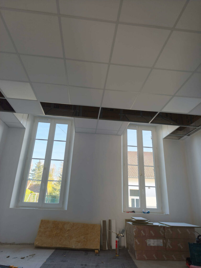 Dans le cadre de ce projet, nous avons réalisé la création d’un plafond afin d’améliorer le confort thermique et acoustique de l’espace.