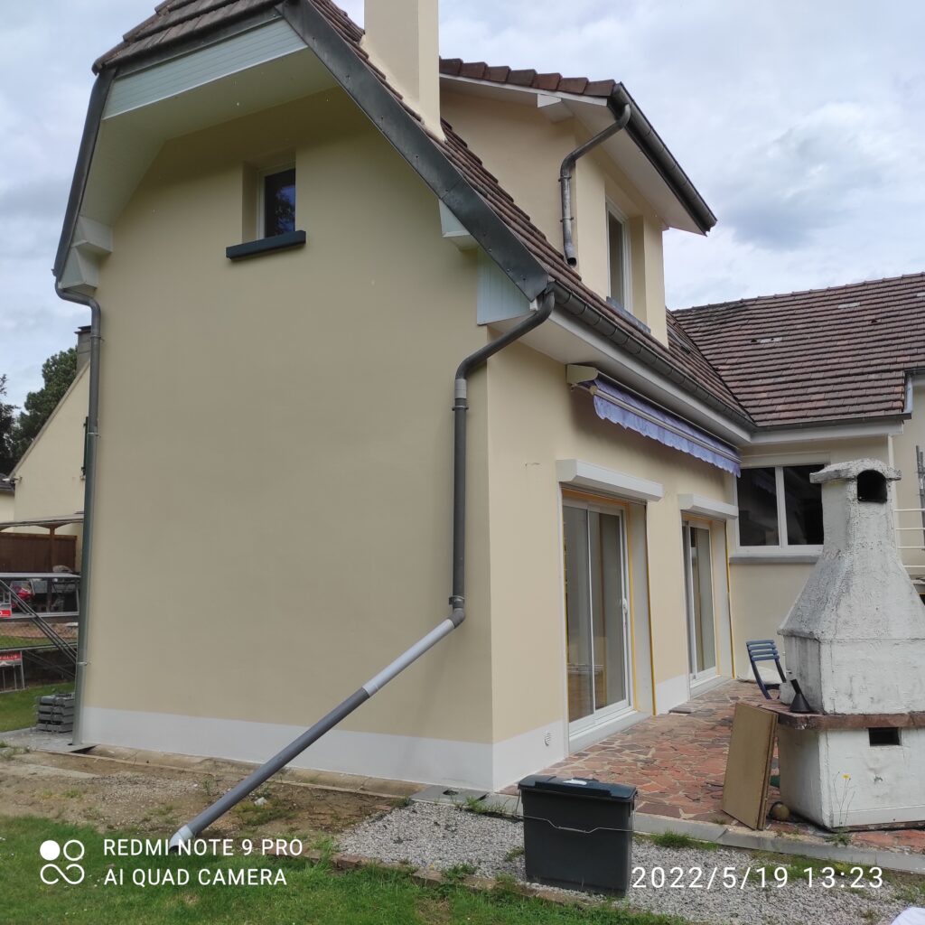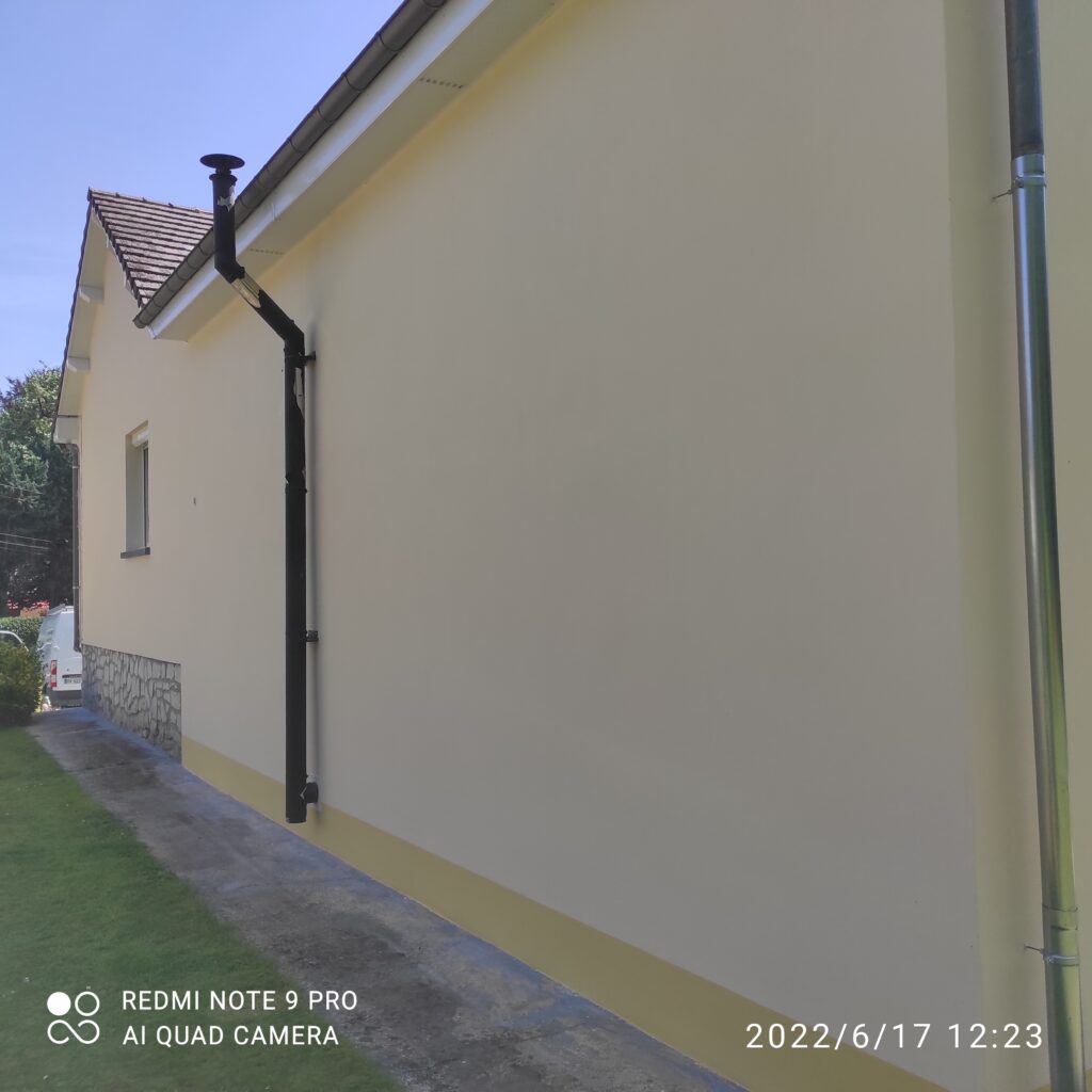 Application d’une peinture extérieure de qualité, résistante aux intempéries et aux UV, pour un résultat propre et durable.